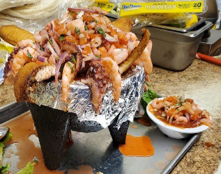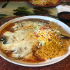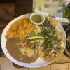 Served with rice and refried beans, you can substitute rice or refired beans for whole beans, salad or steam vegetables for an additional charge..