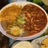 Served with rice, beans (refried or whole), and 3 tortillas.